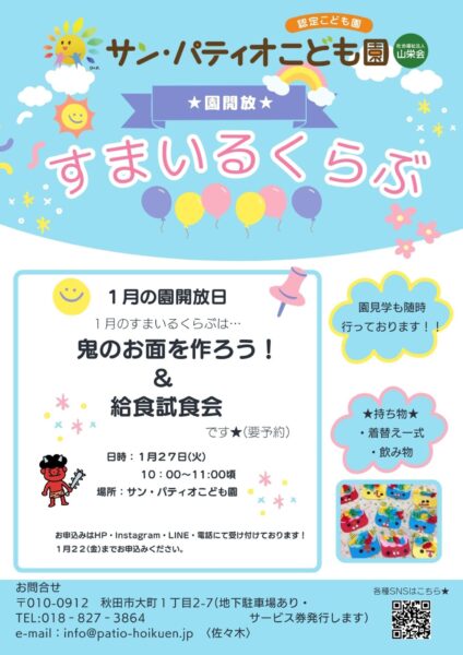 節分に向けて、鬼のお面を作り一緒に遊びましょう★