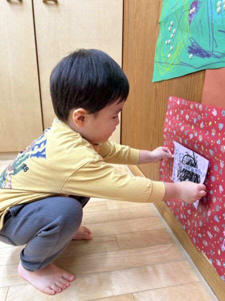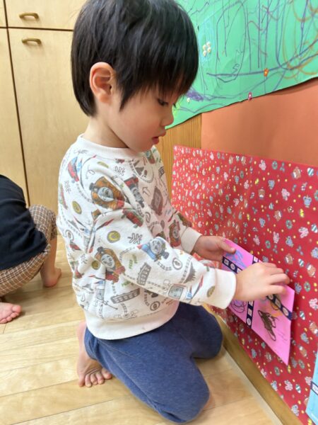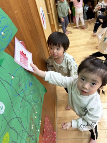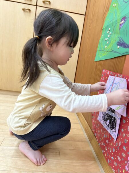 プレゼントはみんなで自分の好きなところに貼りましたよ☺