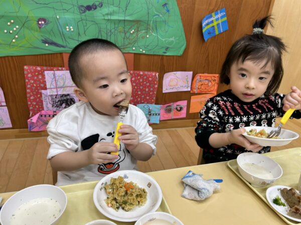 クリスマス会の日は給食も「クリスマスだ!」と喜んで食べているお友達も☺💓