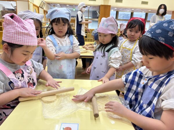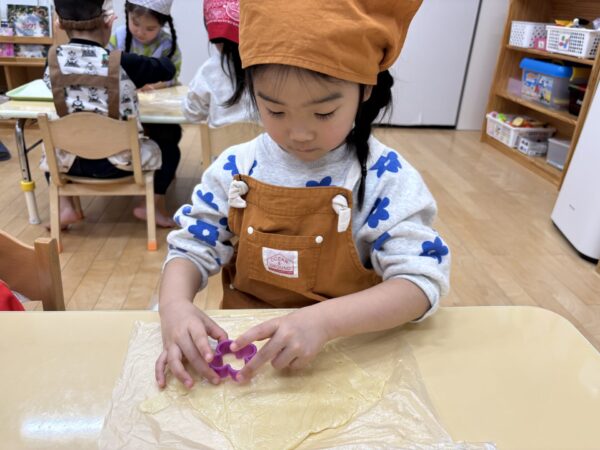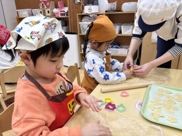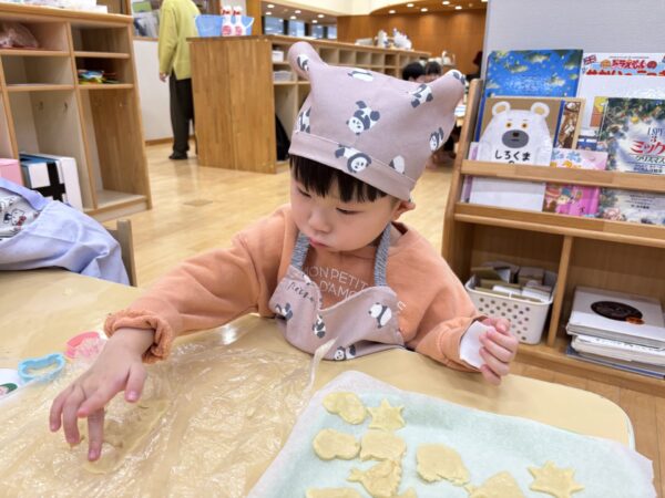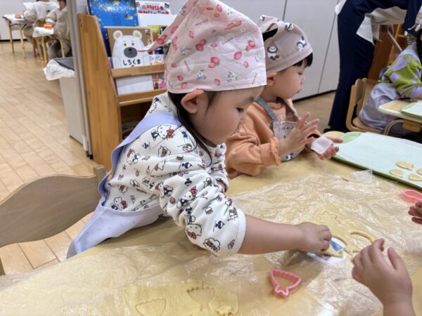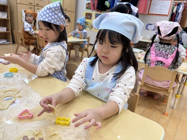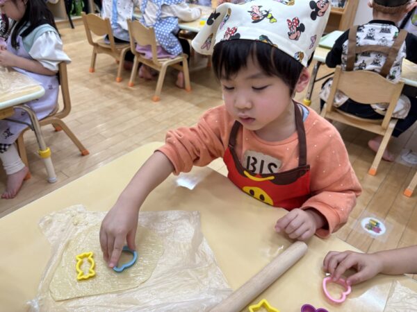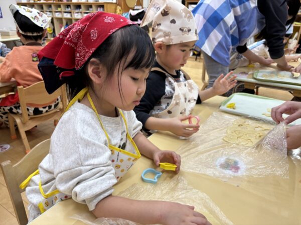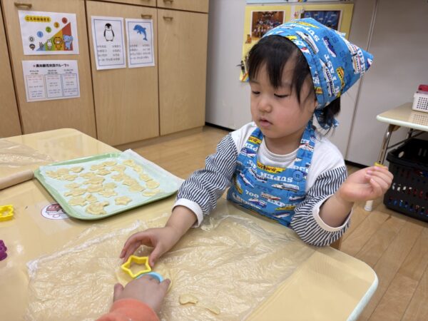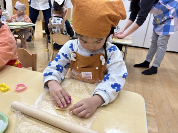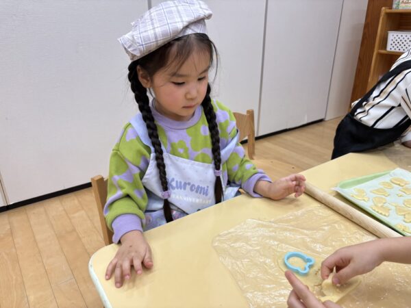 年長さんが作ってくれた生地を分けてもらい、いよいよクッキー作りに挑戦!