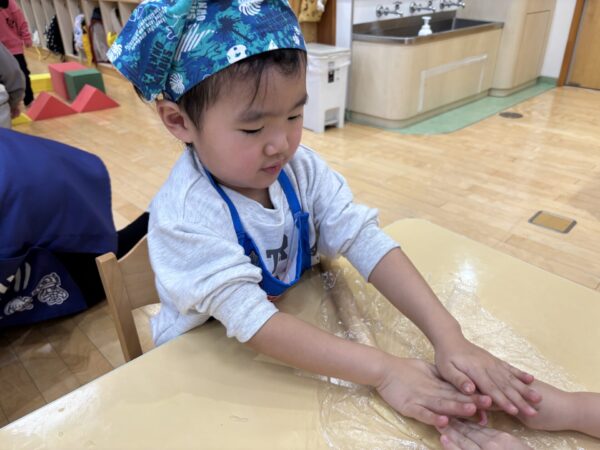 年長のお兄さんお姉さんがクッキーの生地を作ってくれました🌈