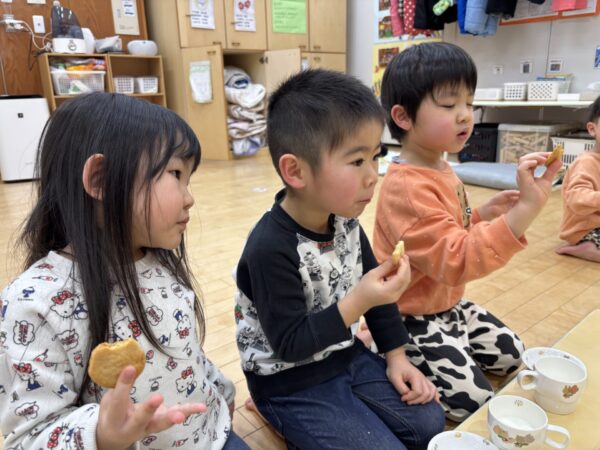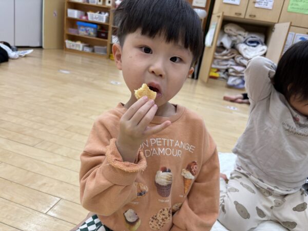 お昼寝から起きて、楽しみにしていたおやつの時間です😋🍪