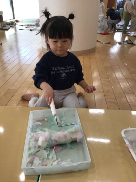 💗コロコロを使ってお花紙を付けていきます