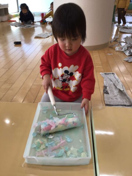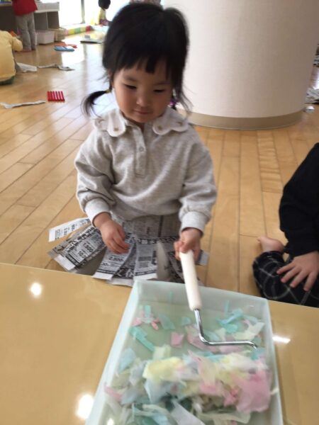 💗コロコロを使ってお花紙を付けていきます