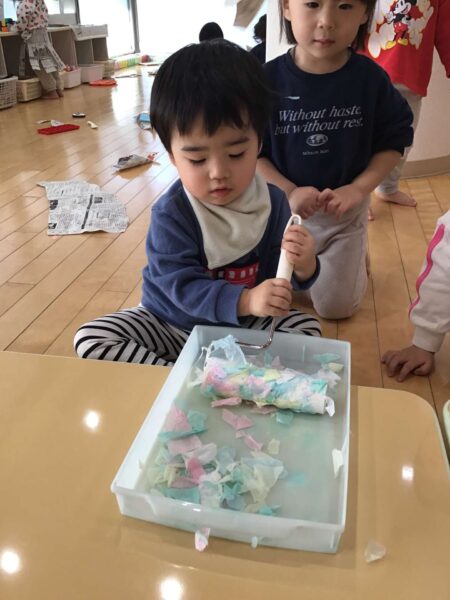 集中して小さく小さくちぎっていましたよ!