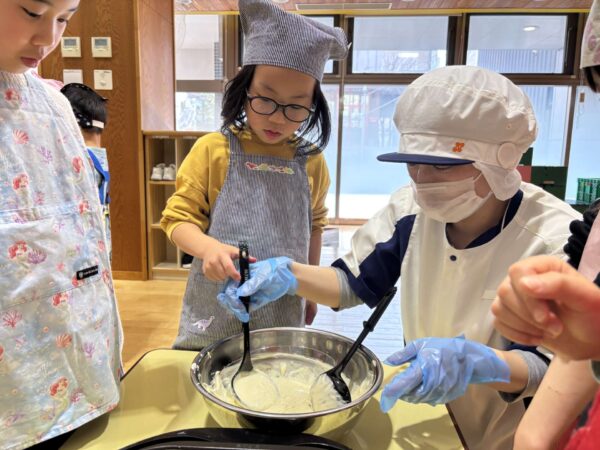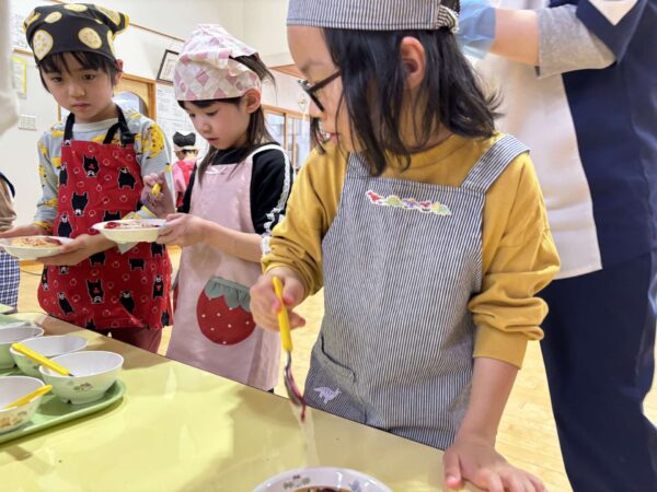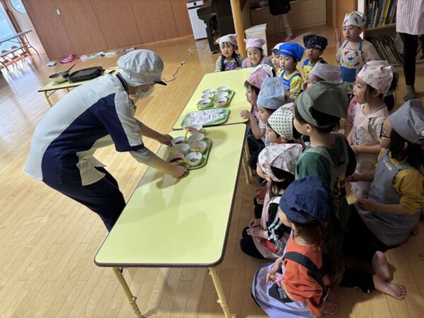 食べる前に、給食の先生にクッキングでたくさんのことを教えてもらったこと、毎日おいしい給食を作ってくれたことの感謝の気持ちを伝えました!