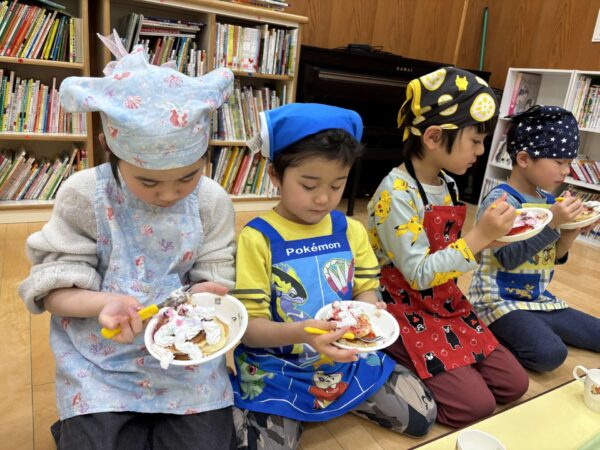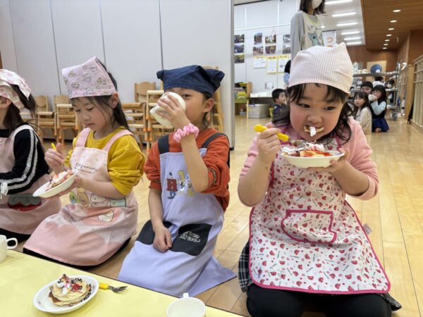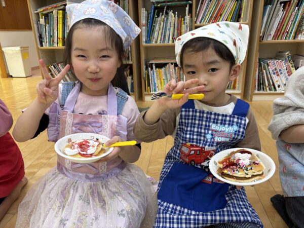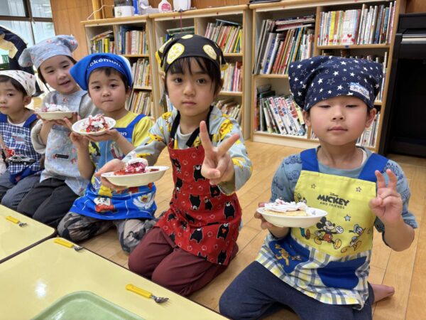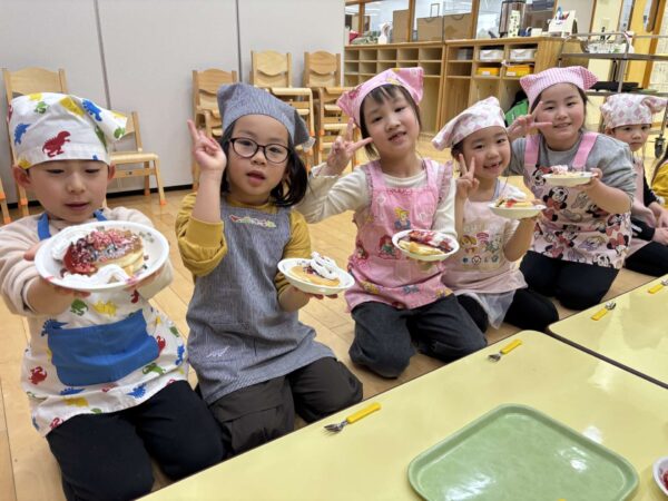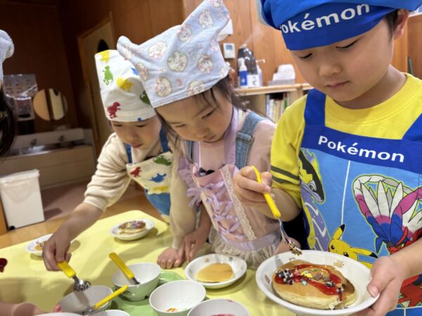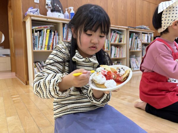 「生クリームたっぷりがいいな〜」「チョコペンで何描こうかな〜」とワクワクしながらトッピングをしましたよ🥰