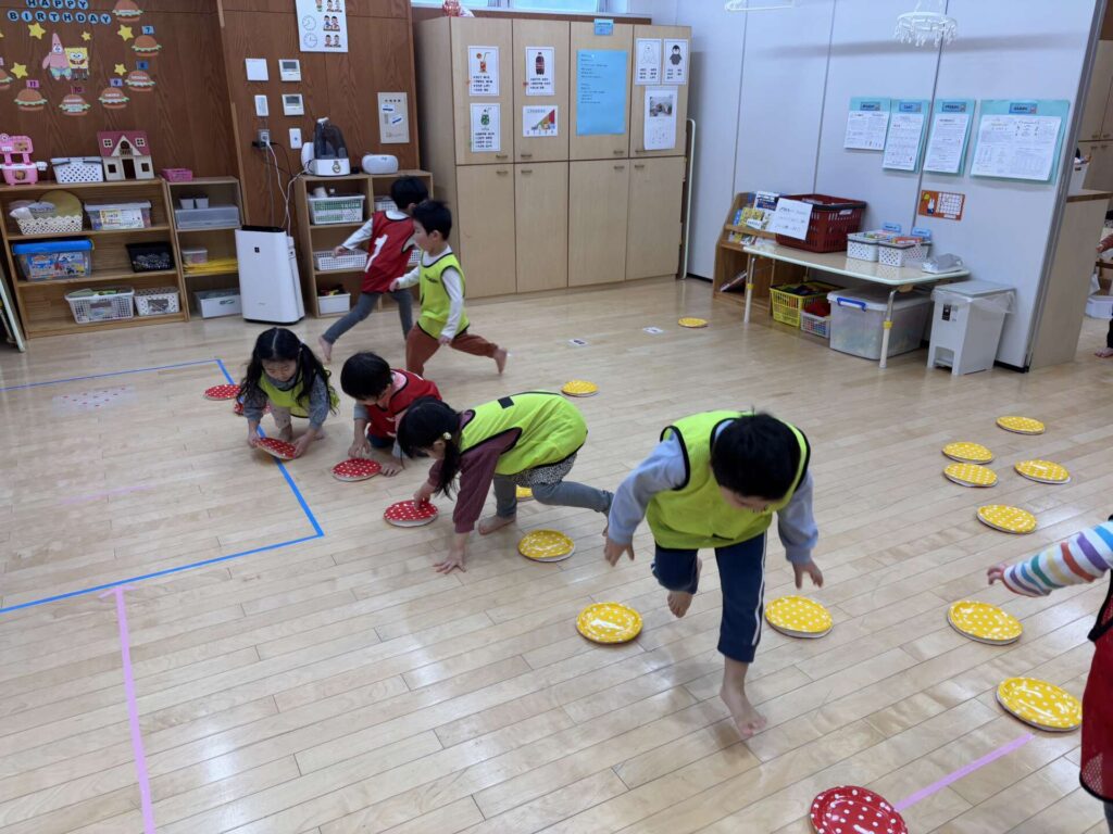 つき組さんの子どもたちは、室内でたくさん体を動かして遊んでいますよ!!