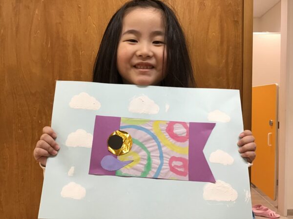 次に、画用紙をこいのぼりの目とひげの形に切り、貼っていきます!