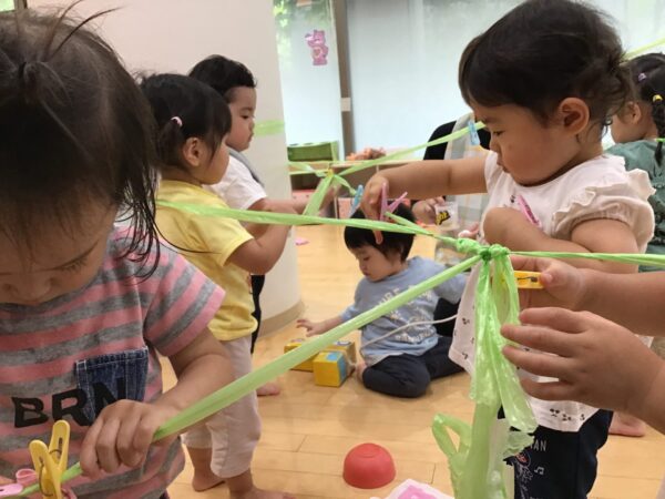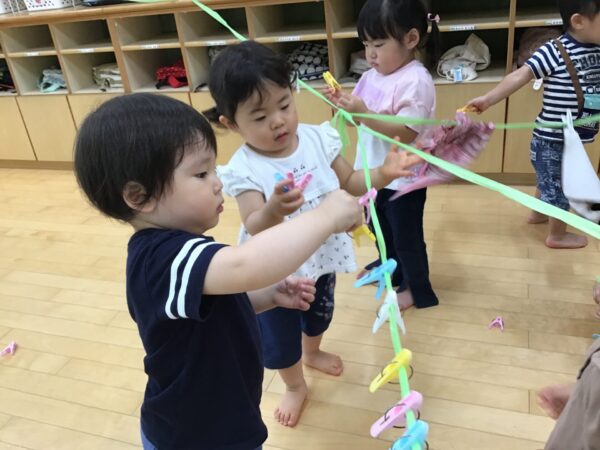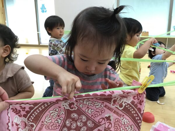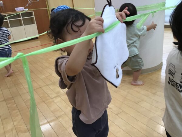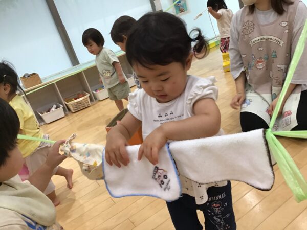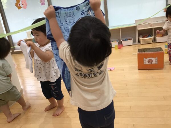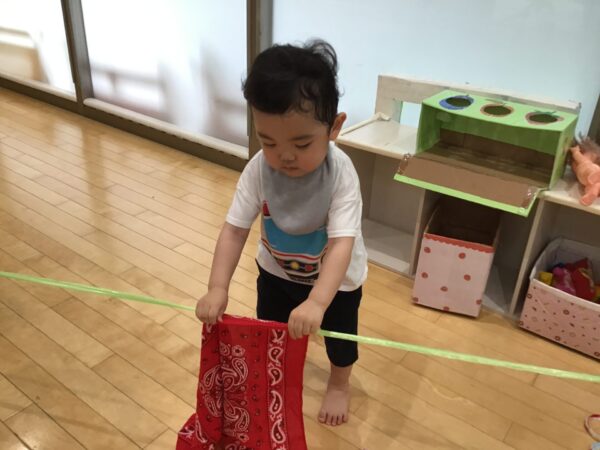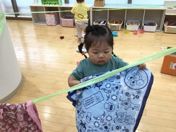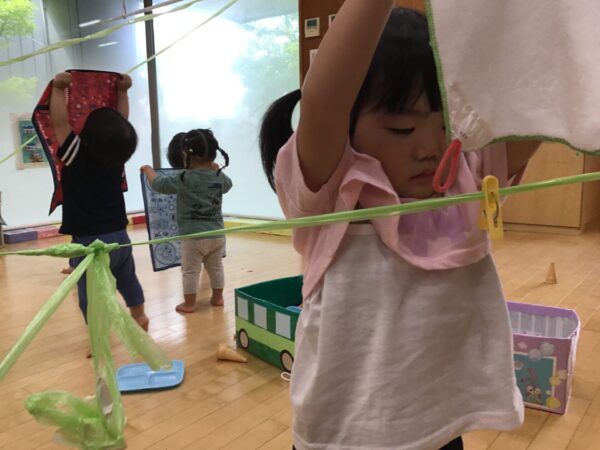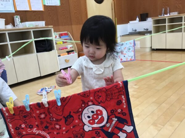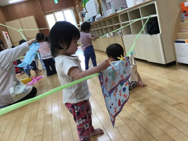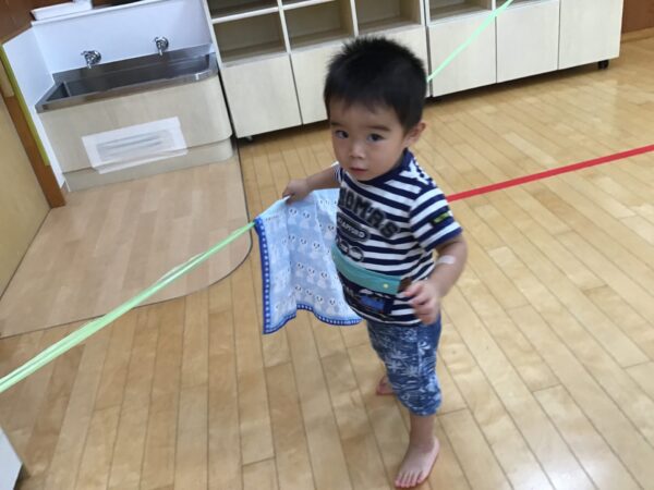 お部屋にあるたくさんのハンカチ、タオルを熱心に干してくれるりす組さんでした🌈