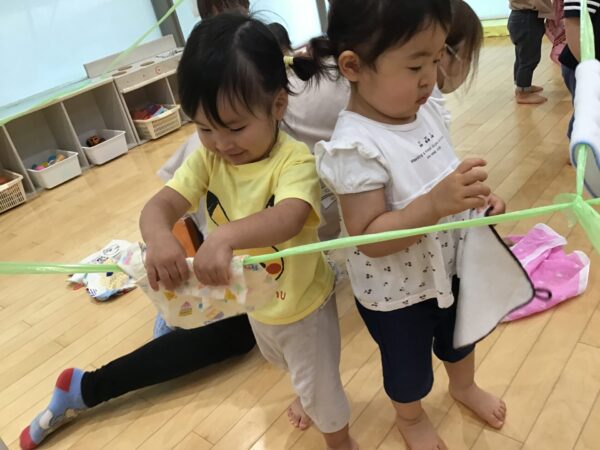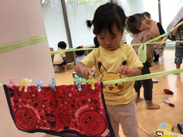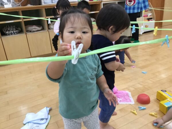 「ママとおんなじ」「せんたく〜」とお洗濯ごっこも楽しみました😊