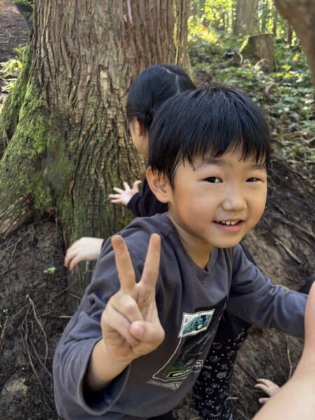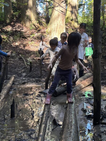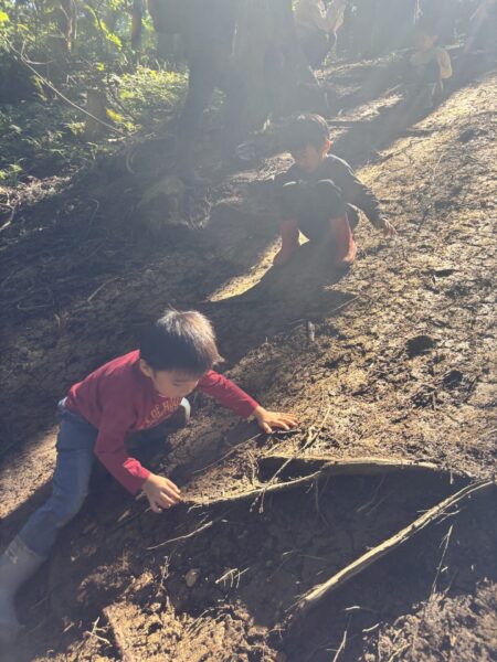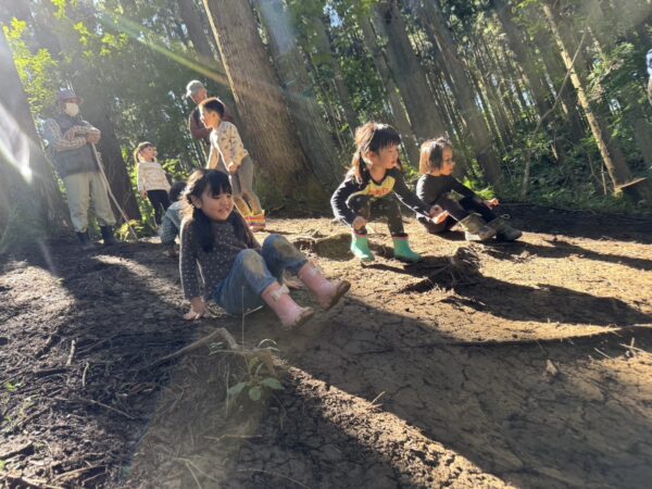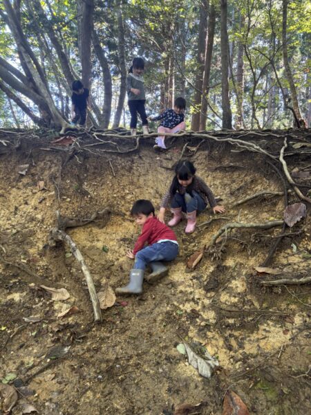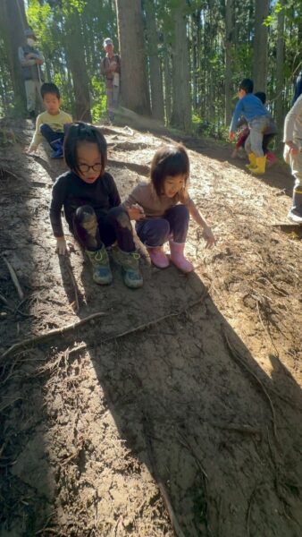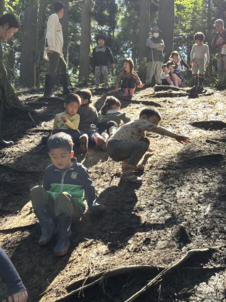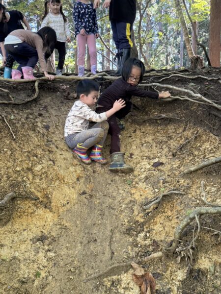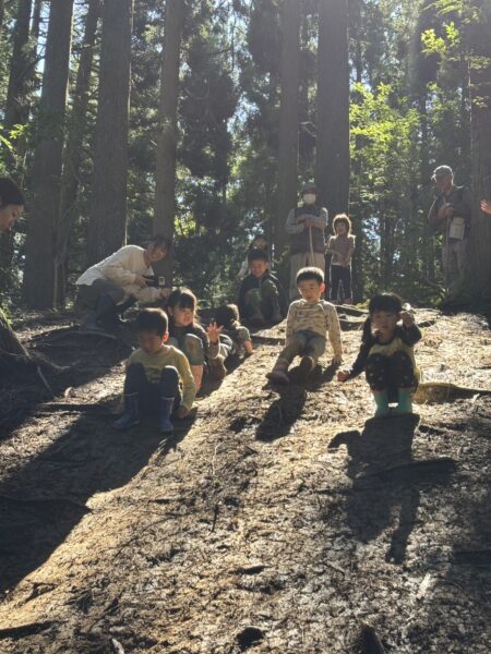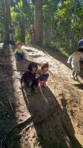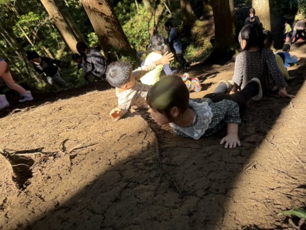 自然の滑り台を滑ったり登ったりと沢山体を動かしました😊