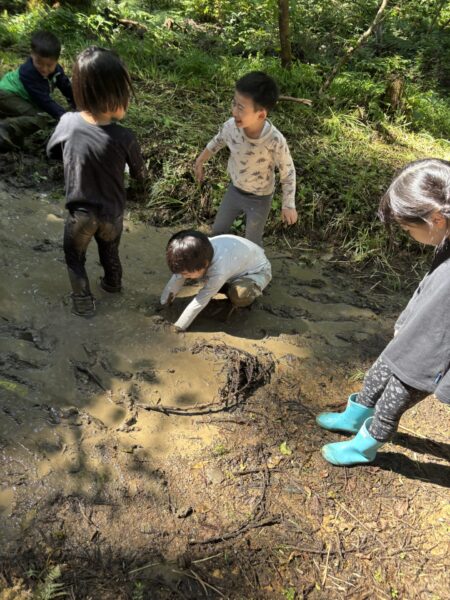 泥に大興奮で泥の中に飛び込んだりそーっと入ったりする子どもたち🫶🏻たくさんの笑顔がありました☺️