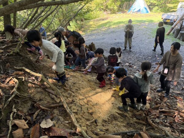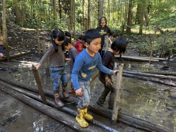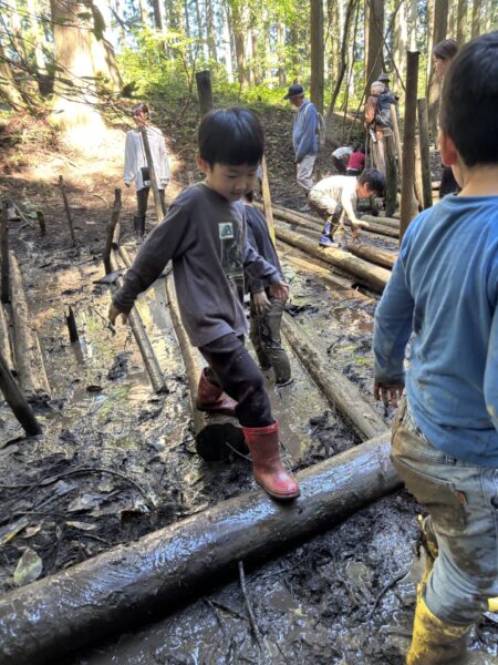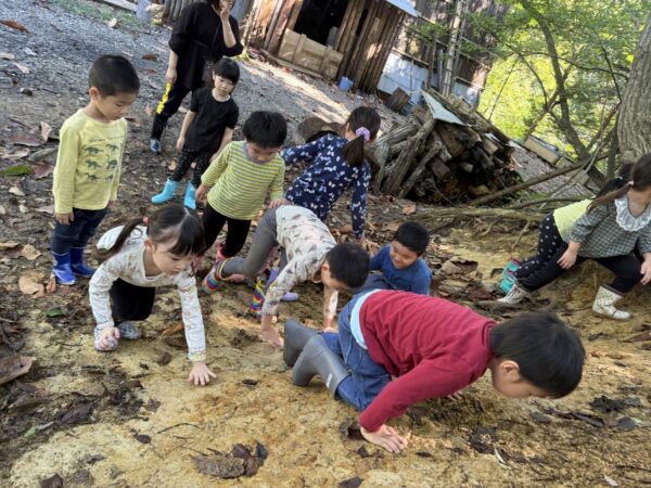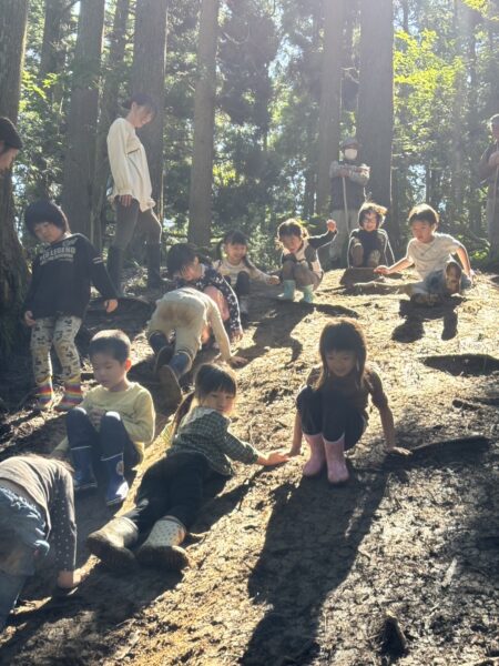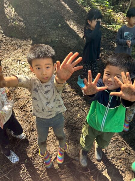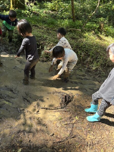 また泥遊びで大盛り上がりな子どもたち😳