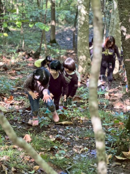 森に着くと、まずはウォーミングアップから始めました!軽い坂を昇り降りしましたよ😊
