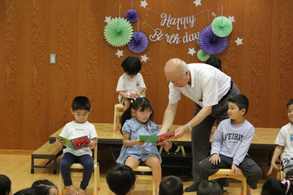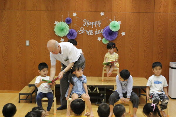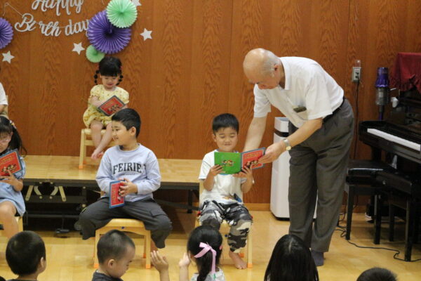ご紹介の後は園長先生から誕生カードをもらいます🌷
