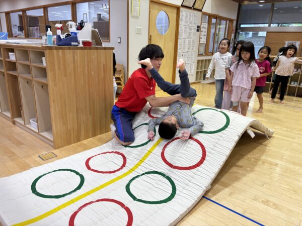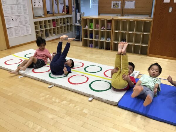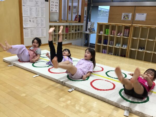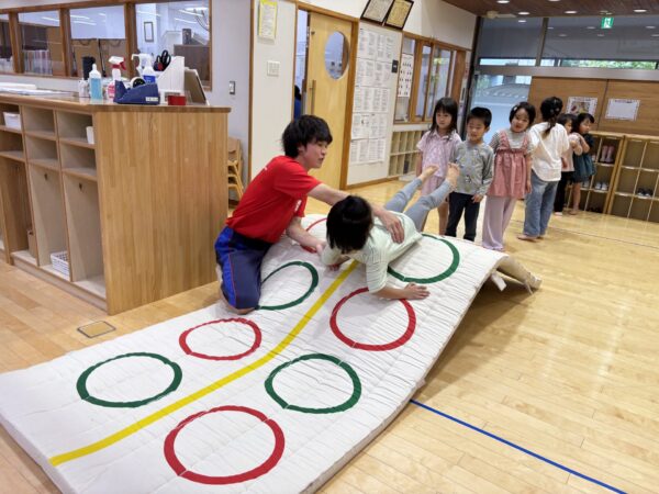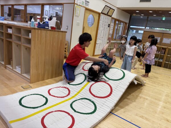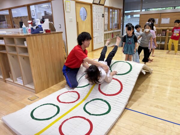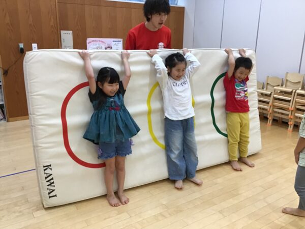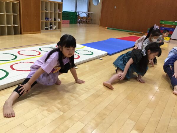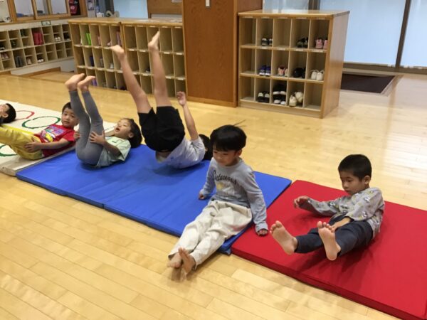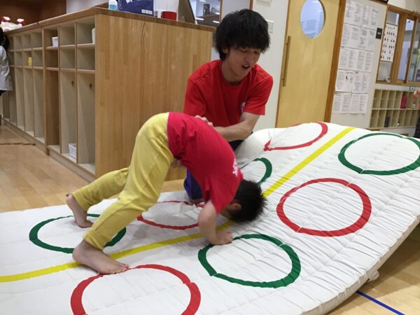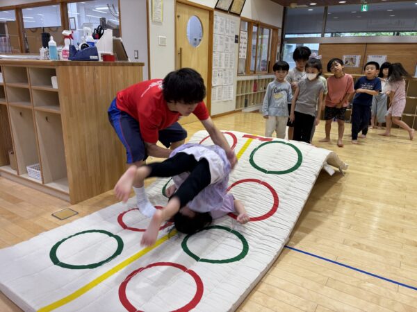 後ろ向きの姿勢にちょっぴりドキドキしながらも、先生に手伝ってもらって勢いよく回ります🌀