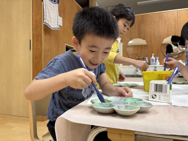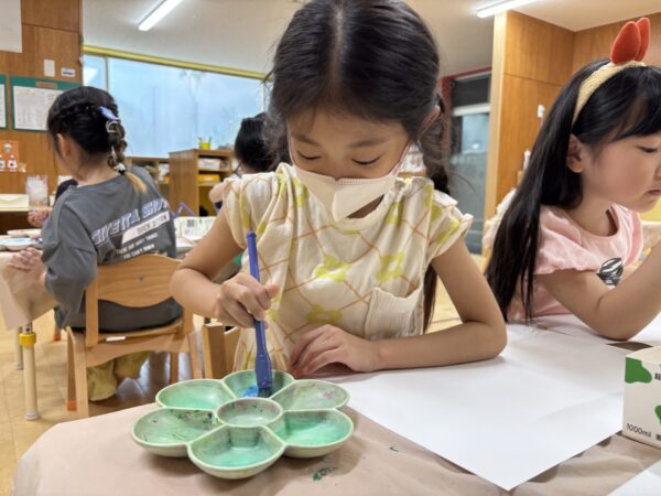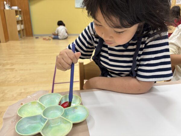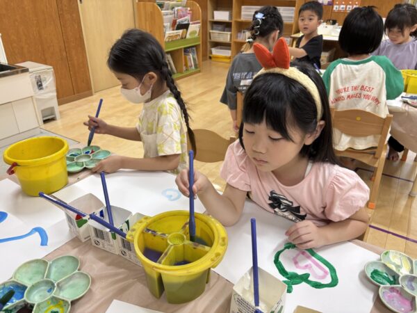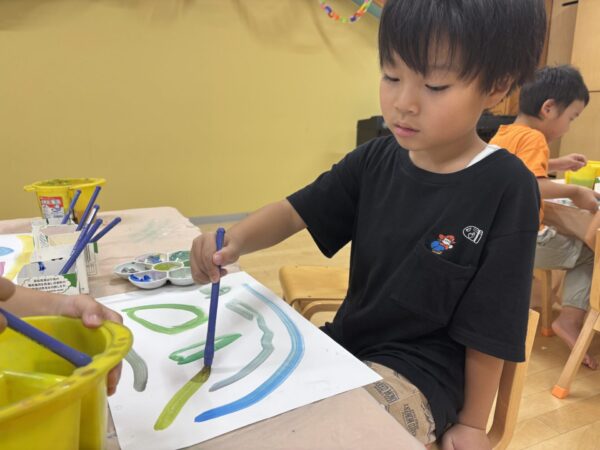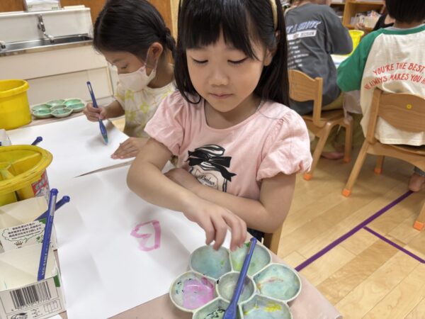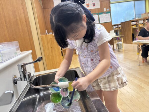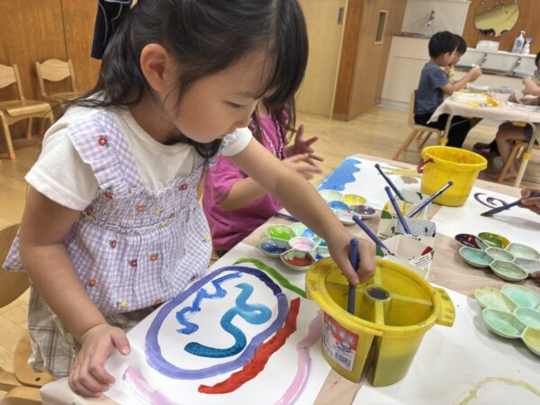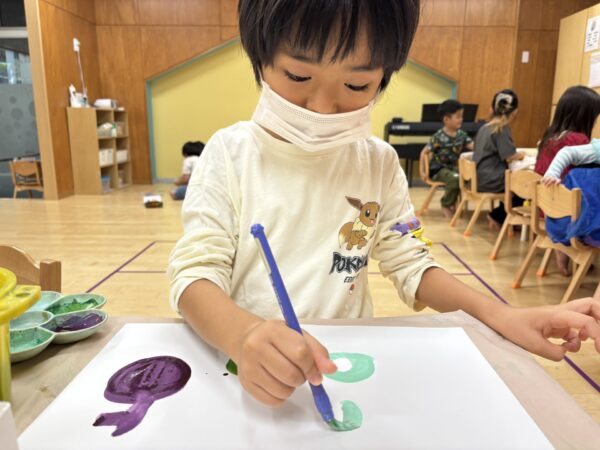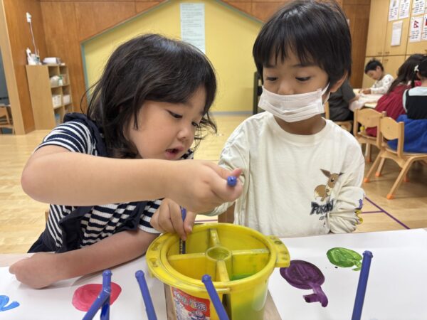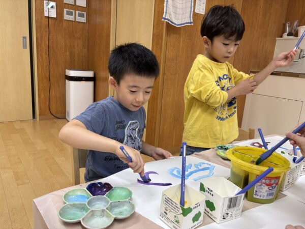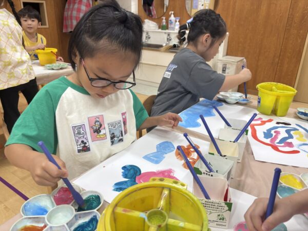 『何色を混ぜようかな〜?』『何色を作ろうかな〜?』と友達と会話を楽しみながら、パレットに絵の具を乗せて混ぜていきます🖌