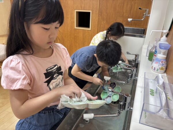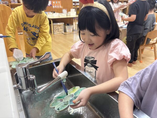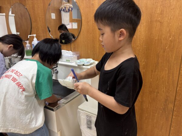 教えてもらったやり方をすぐにマスターして、筆を使ってパレットを綺麗に洗うことができました👏🏻👏🏻