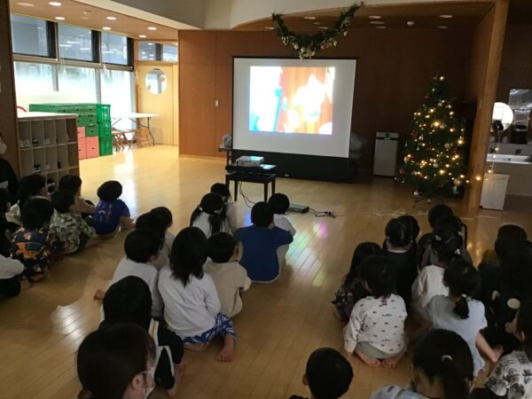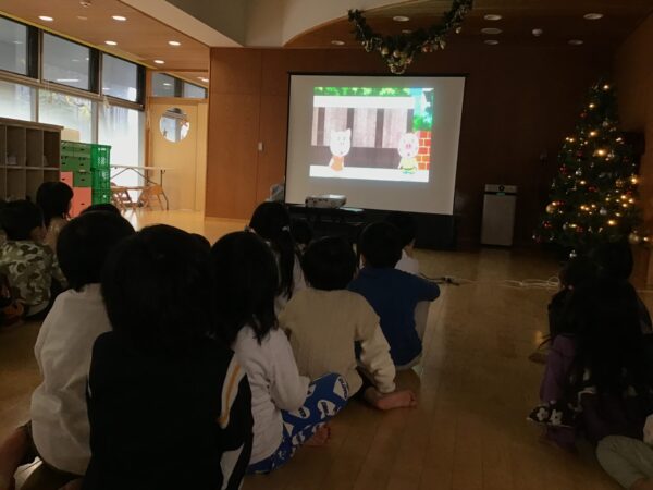 今日の交通安全教室は1年間のおさらいとして、映画を観ながら復習をしましたよ!