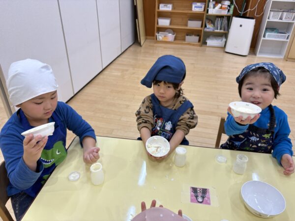 今日はクッキングでした!今回はバター作りに挑戦しました😊