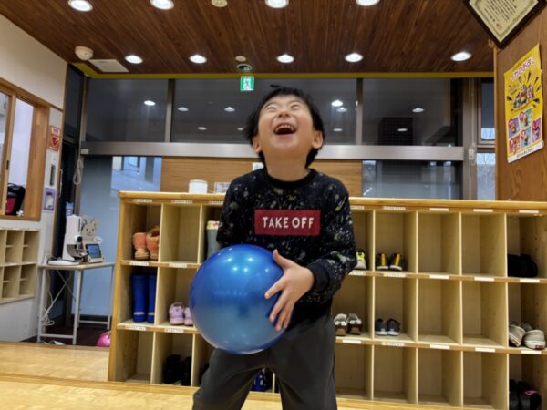 ボールを投げる角度や力加減を考えながら、箱を狙って投げていましたよ😊