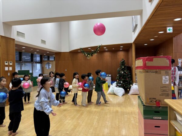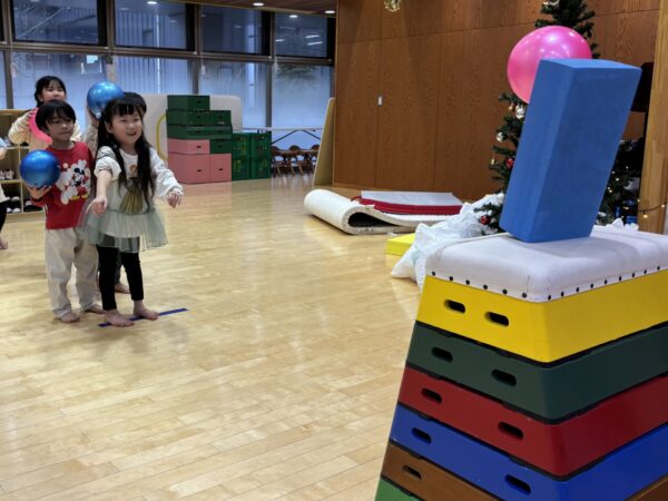 箱にボールを入れるゲームや、積み木を倒す的当てゲームを楽しみました!
