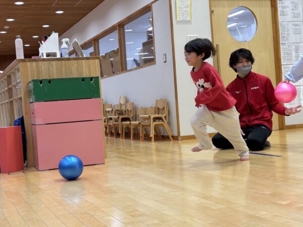 ボールより早く先回りすると、簡単にキャッチできることが分かった子どもたち😊