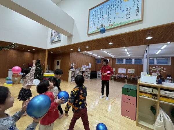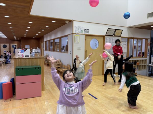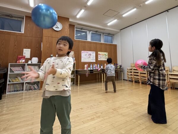 ボールが浮いている間に拍手をしたり、頭やお腹を触ってからキャッチなど、レベルアップしたゲームもしましたよ👏🏻