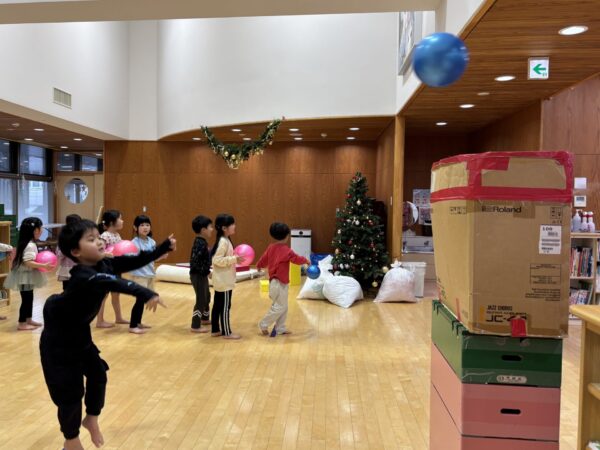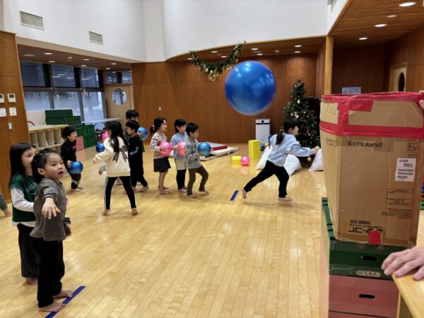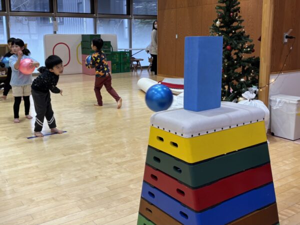 箱にボールを入れるゲームや、積み木を倒す的当てゲームを楽しみました!