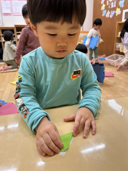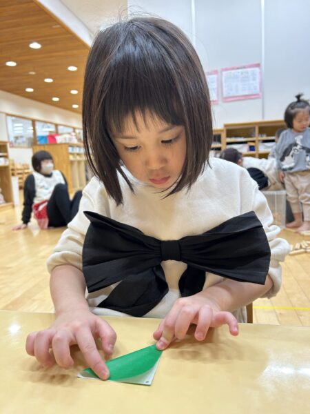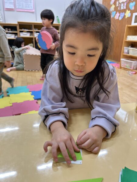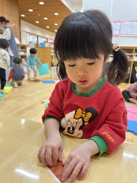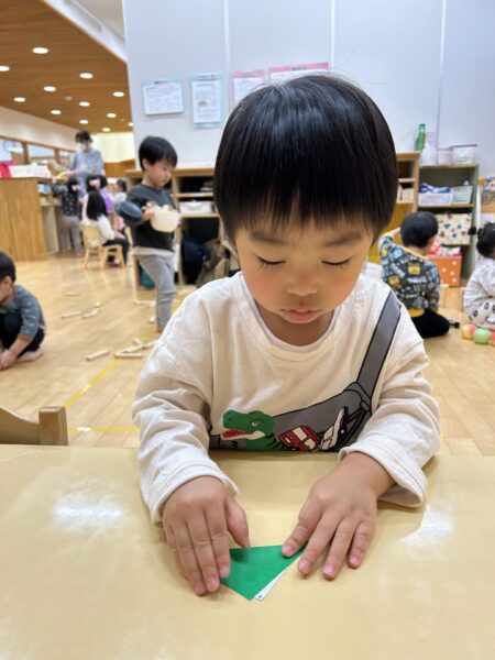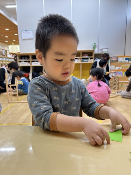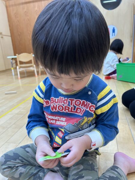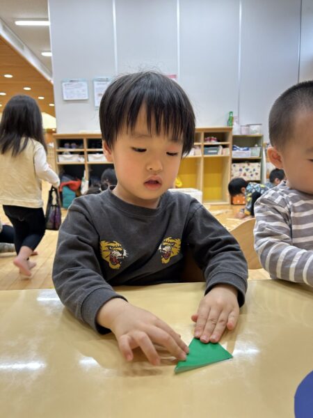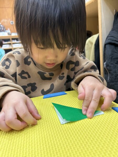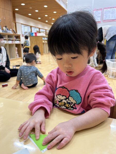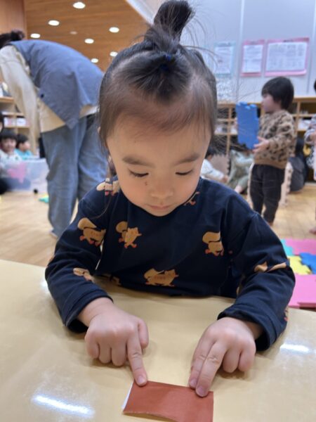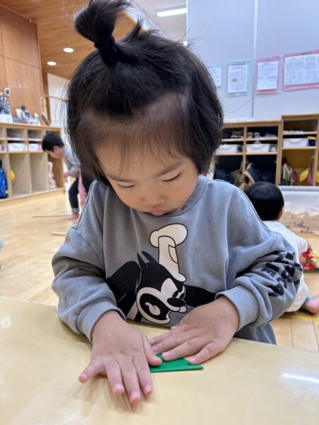 だんだんとコツを覚えてきて、ぴったりと角を合わせられるお友達もいましたよ👀!