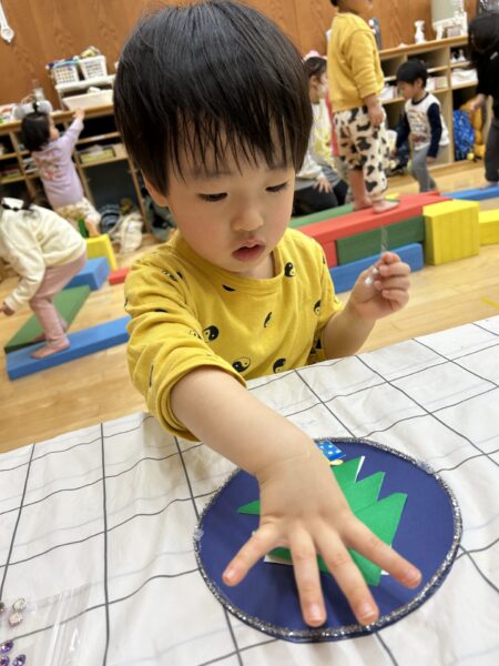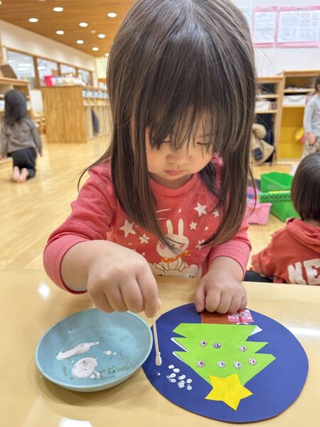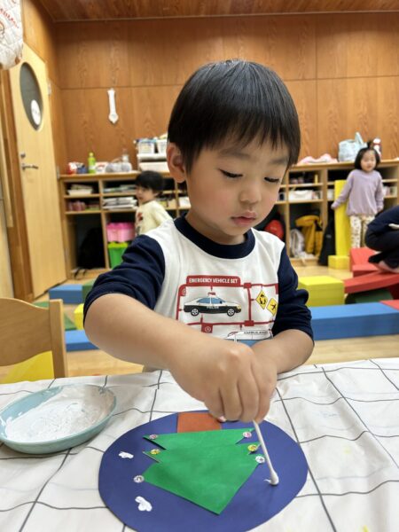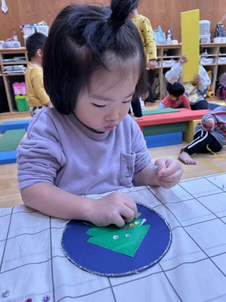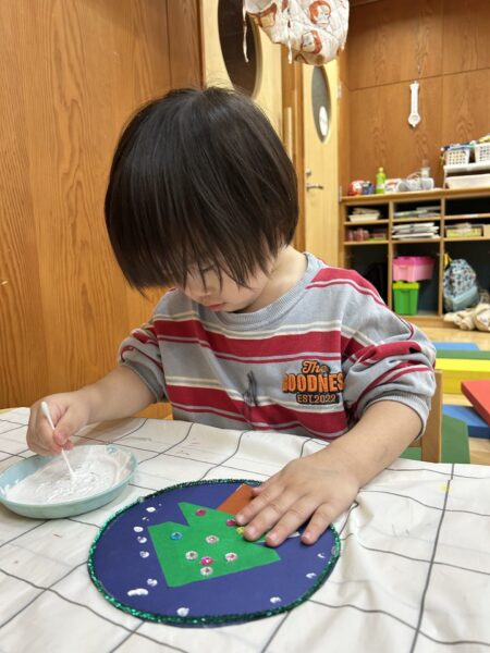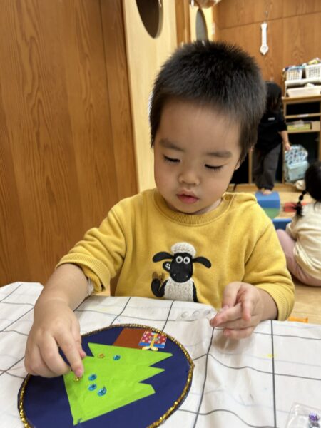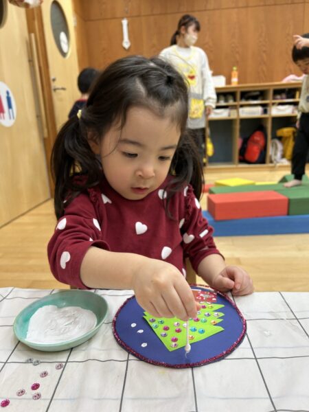 自分たちで作ったかわいいキラキラのクリスマスツリーに毎日釘付けな子どもたちです👀💓
