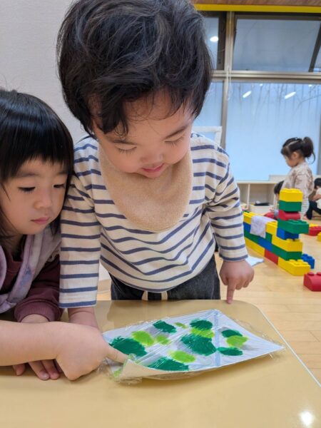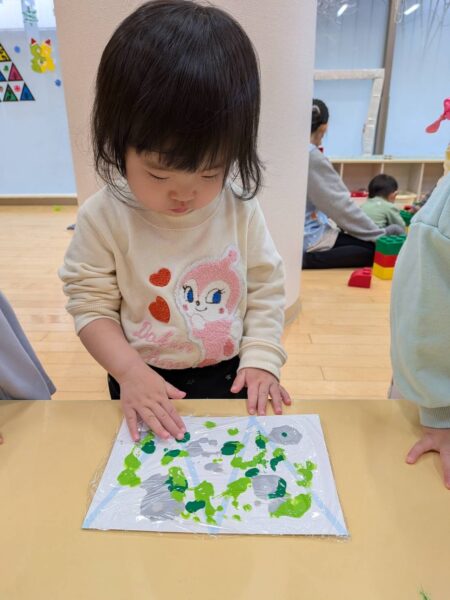 手が汚れてないのにきれいに画用紙に絵の具が付いてますよ〜✨