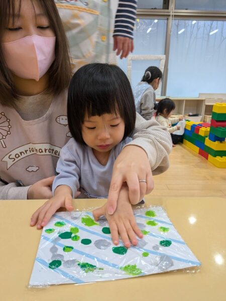 絵の具で手が汚れるのを嫌がるお友達もいるのでみんなが楽しめる方法を考えましたよ🤗!!