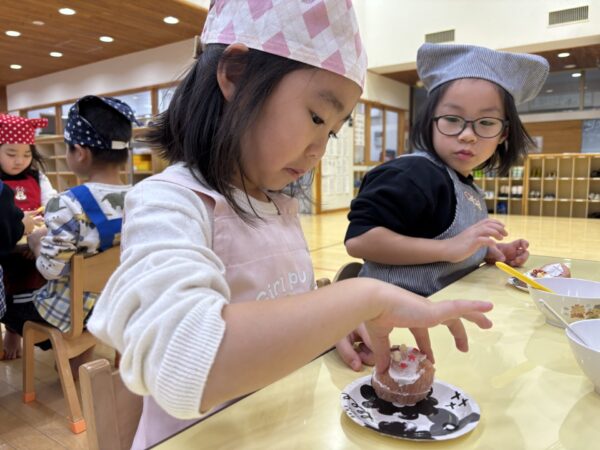 最後にトッピングをして、可愛いクリスマスケーキの完成です🧁🎄🩷