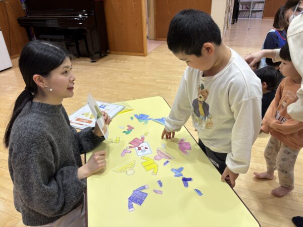 「scarf🧣」「jacket🧥」を1人ずつ順番に着せていきます!