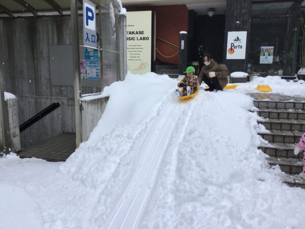 階段を登ってシューっと滑るの楽しいね〜🎵