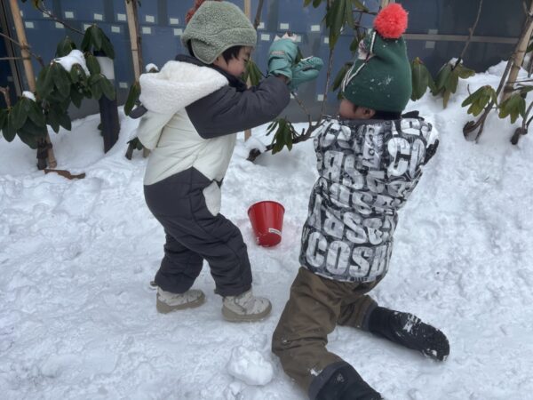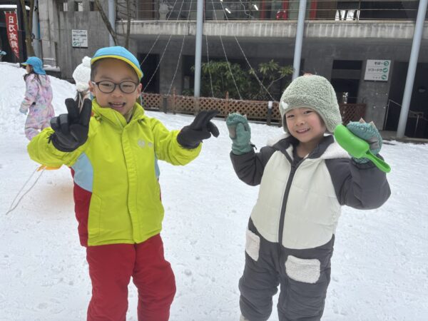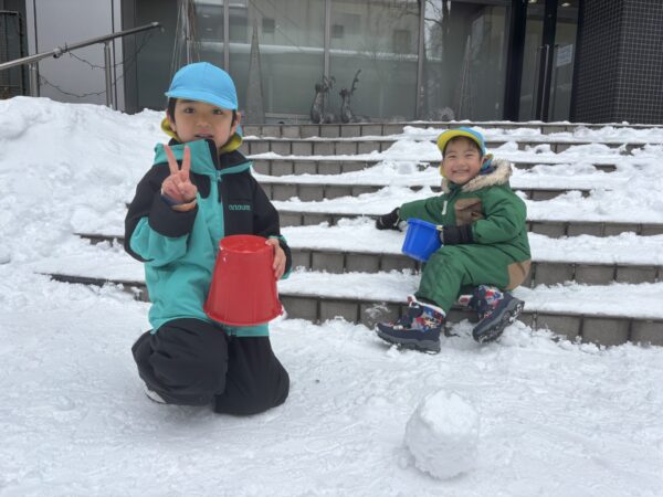 「雪遊びするよー!」とみんなに伝えると「いえーーーい!!!」と飛び跳ねて大喜び😆💨