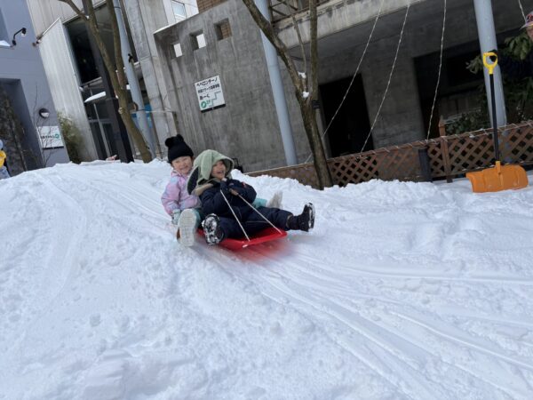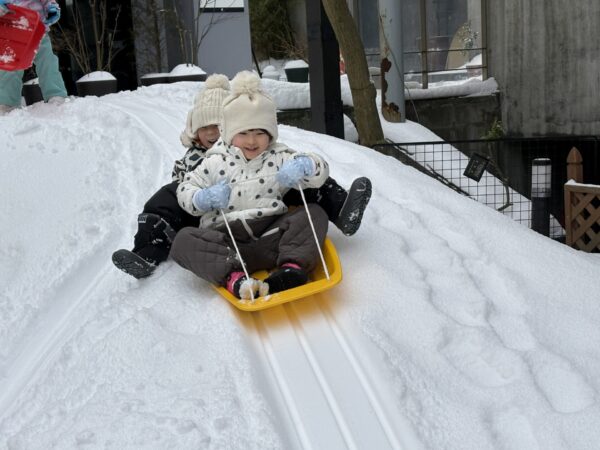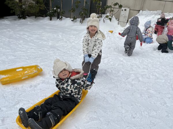 お友達と一緒にそりに乗って、大はしゃぎ♪