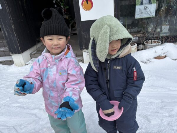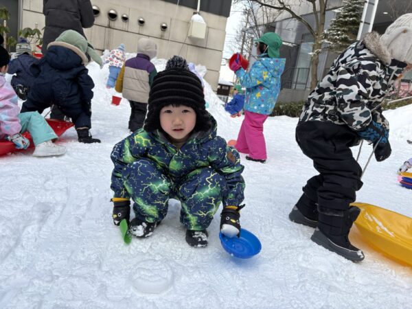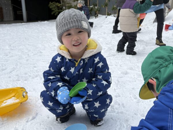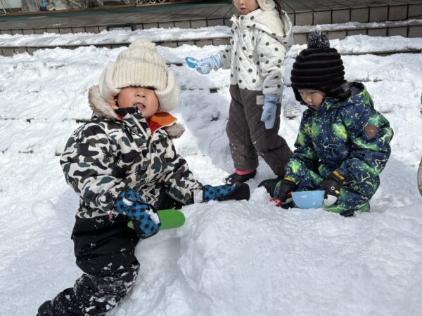 「かまくら作るんだ~」とお友達と一緒にかまくら作りに挑戦したりしました♪