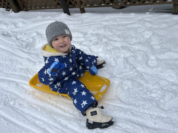 自分でジャンプスーツや手袋などを準備して元気よく外に出ました!