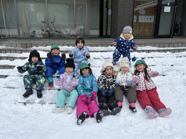 今日は雪遊びをしました♪「今日はは雪遊びだよー!」とお話しすると、「やったー!!!」と大喜びのほし組さん😊