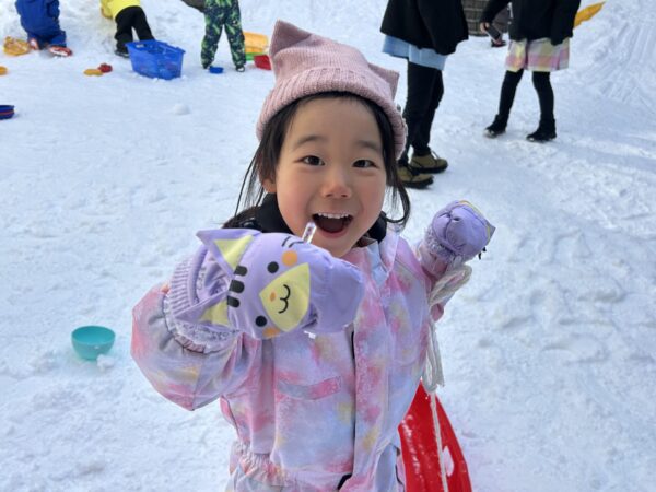 つき組さんの待ちに待った雪遊び!朝の会で「今日は雪遊びをします!」という先生の言葉に大喜びのみんなでした😆🩷