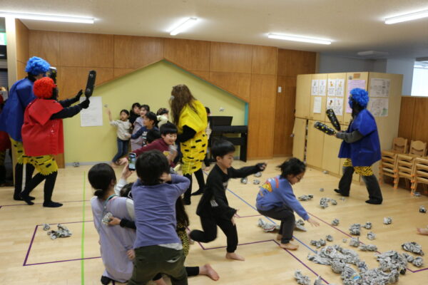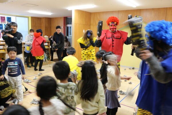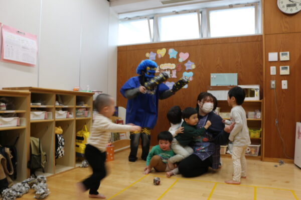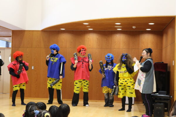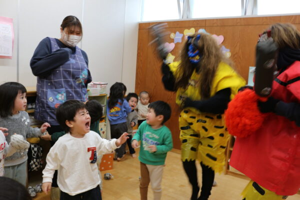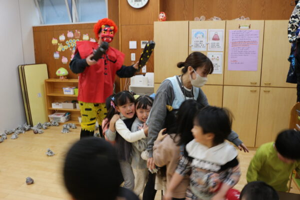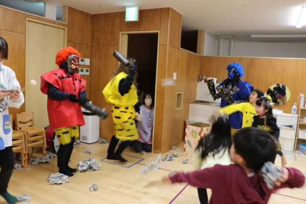 泣いてしまったお友達もいましたが、豆をまいて自分の心の中の悪い鬼を退治することができたと思います!