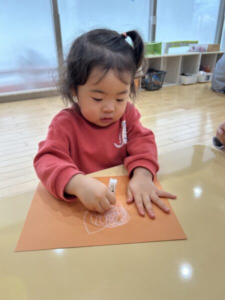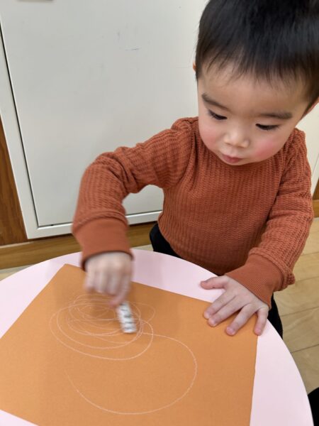 クレヨンをよく動かしてぐるぐると書くことも出来ていますよ!!