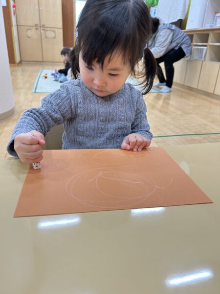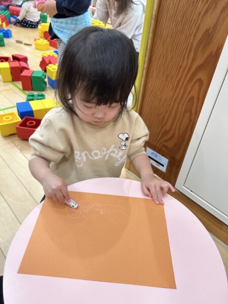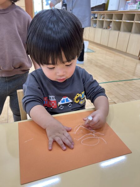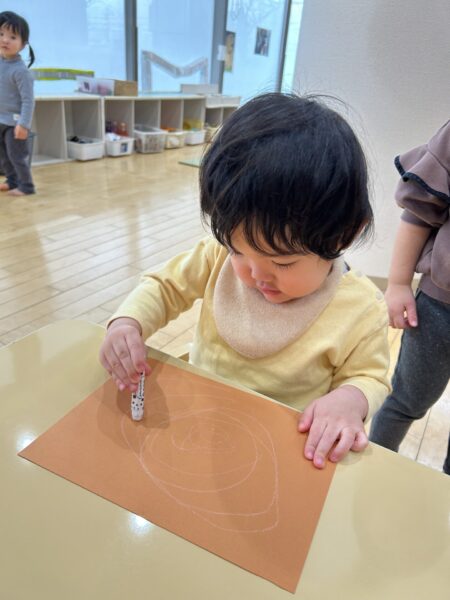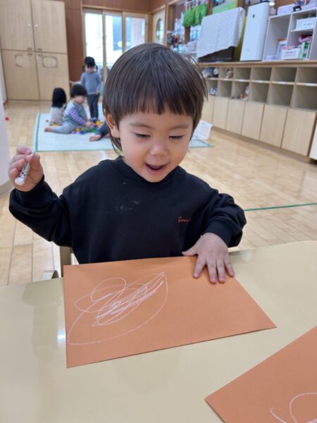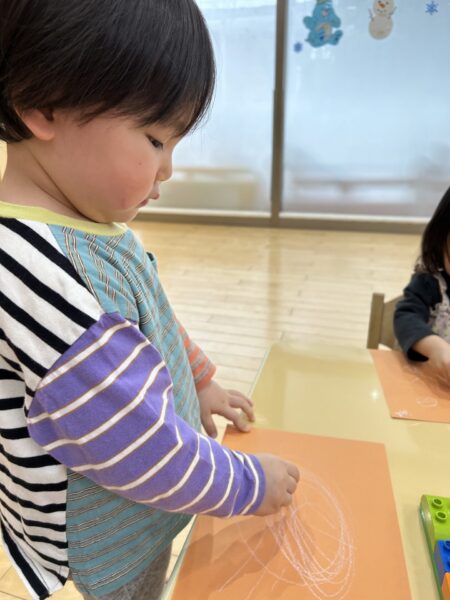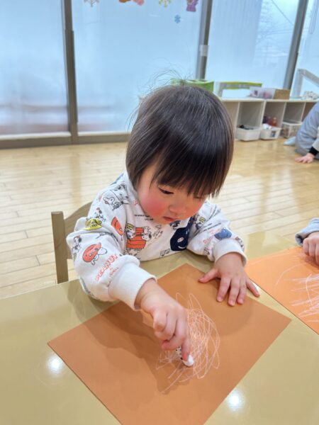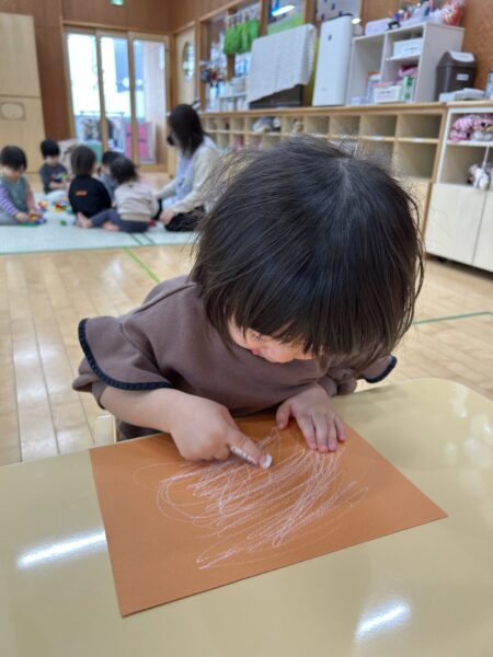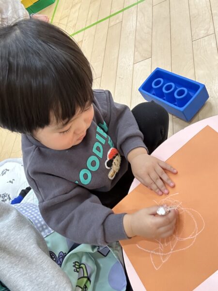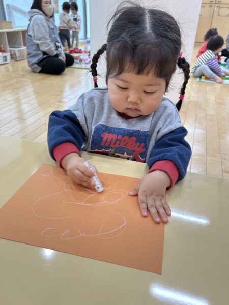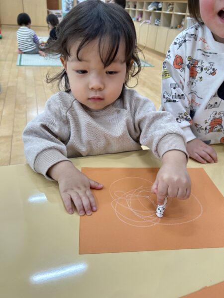 クレヨンをよく動かしてぐるぐると書くことも出来ていますよ!!