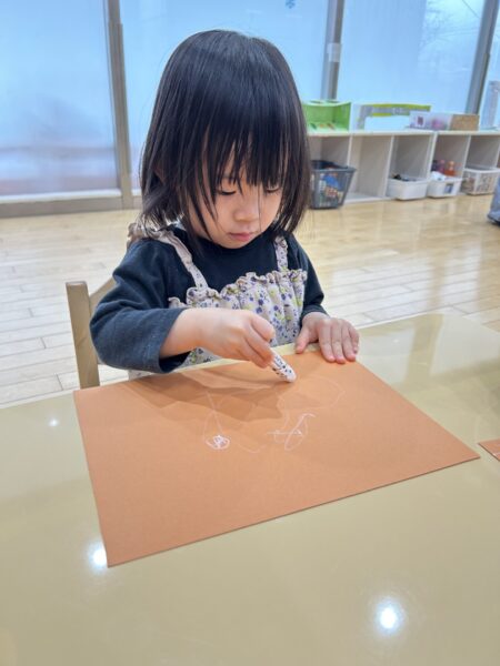 白いクレヨンを使ってぐるぐる描き。