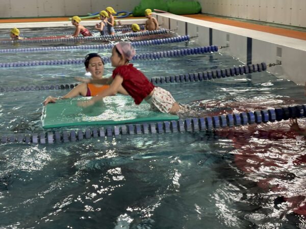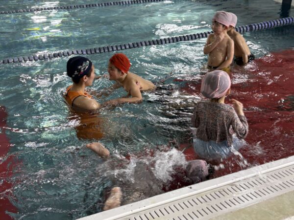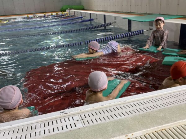 もぐったり、上手にバタ足をしたりと、楽しい水泳教室でした♪