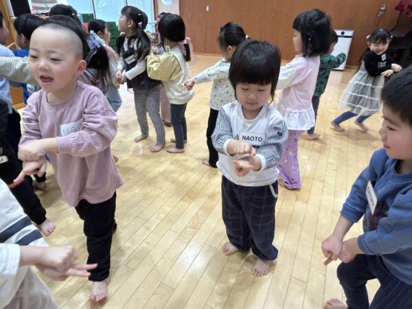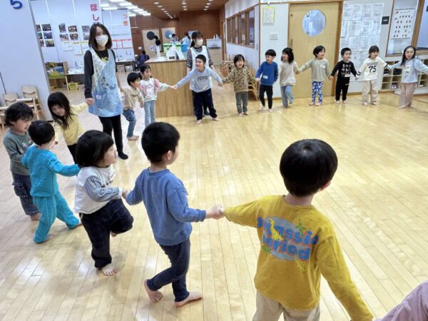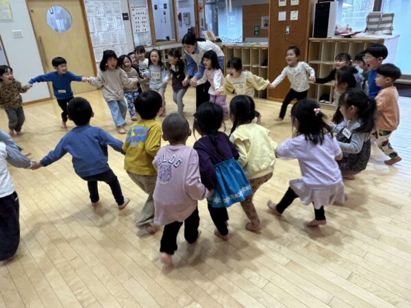 みんなで手を繋いで輪を作り、大きくなったり小さくなったり...みんなこの時間が大好きです😆