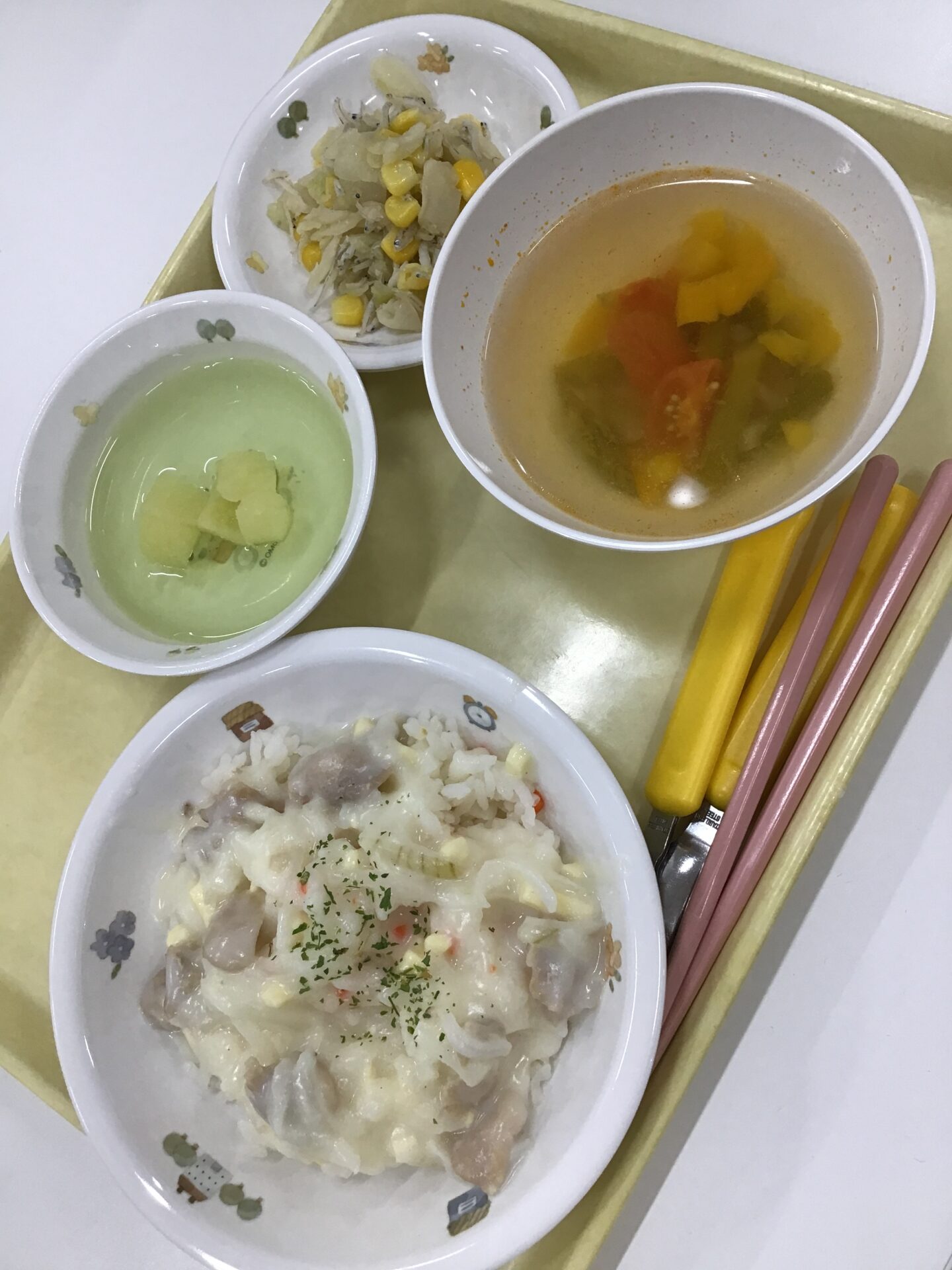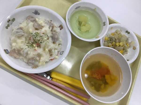 ご飯の中ににんじんが隠れていて、色合いがきれいでしたよ。